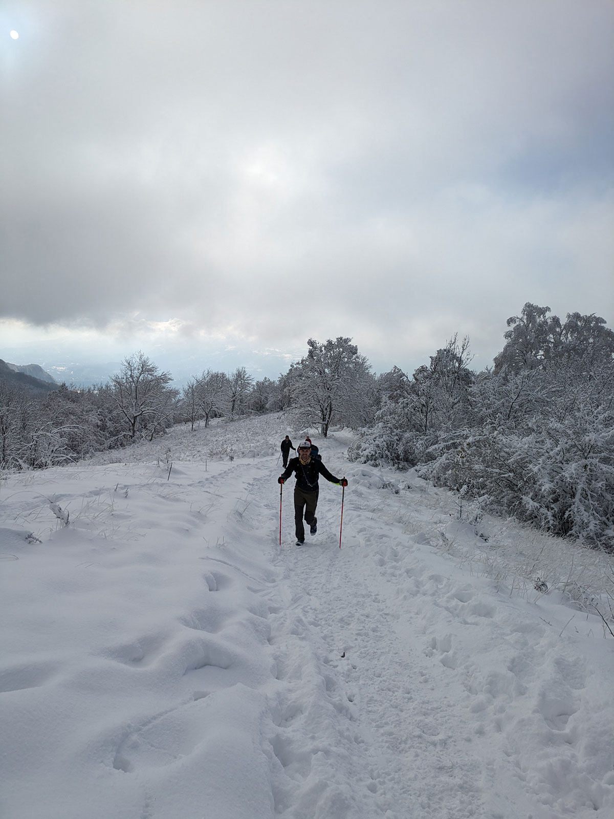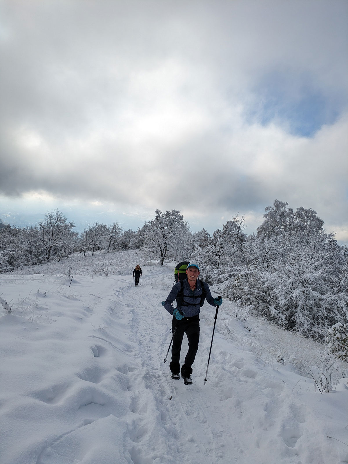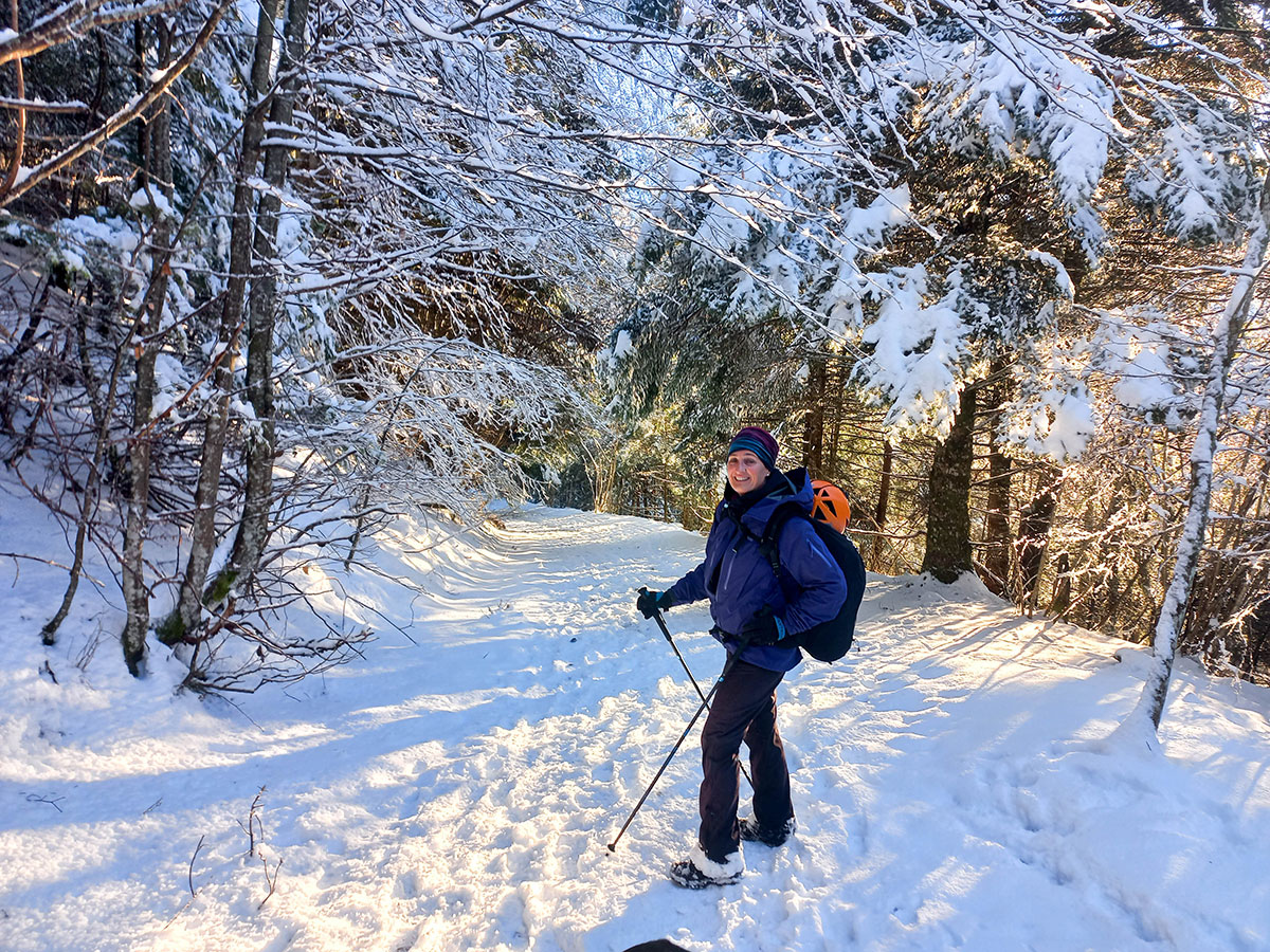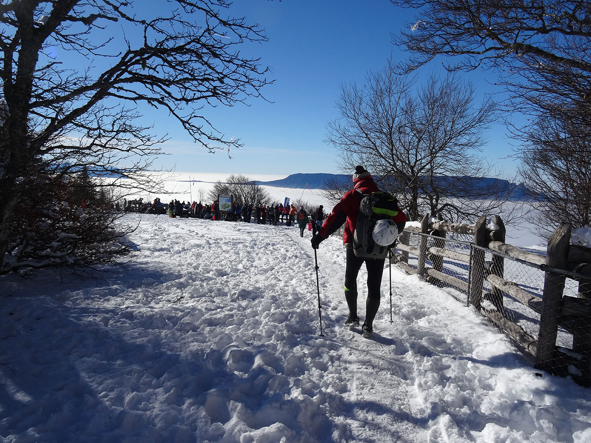D’un côté la montée « cool » de la crémaillère, un très beau sentier qui suit l’ancien parcours du chemin de fer qui montait autrefois au Revard, bucolique et protégée par les arbres cette très belle montée ravira tout le monde… y compris ceux qui veulent parcourir le challenge du jour en mode touriste : il pourront s’arrêter sur les panneaux descriptifs de la vie à l’époque du chemin de fer !